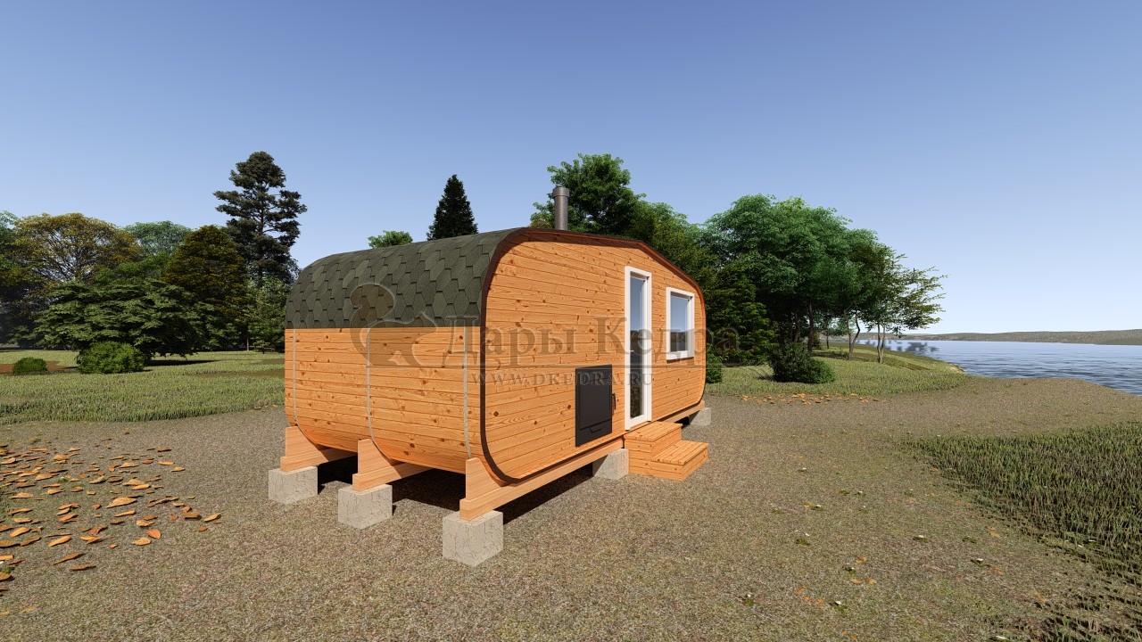 Баня-бочка овальная из кедра 4х2,2 метра Овальная баня-бочка из кедра просторная и вместительная. Имеет два отделения: раздевалку, которую можно использовать как комнату отдыха, и парилку. Для удобства пользования раздевалка оснащена лавочкой, полкой и вешалкой из кедра. В парильном отделении располагается печь и двухуровневый открытый полок. Для установки такой модели не требуется полноценный фундамент, поэтому при необходимости ее можно перенести на другое место. Так же баню-бочку можно укомплектовать верандой со скамейками, козырьком и печью с внешней загрузкой, благодаря которой весь мусор после топки останется на улице. Древесина кедра насыщена эфирными маслами и фитонцидами, которые активируются при воздействии температур. Таким образом, парение в каркаско-щитовых банях из кедра вдвойне полезно.