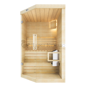 Финская сауна с электрокаменкой представляет собой компактную парную кабину, изготовленную из целебной древесины сибирского кедра. Финская